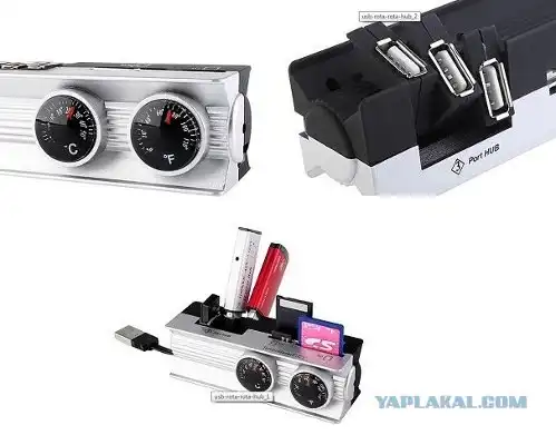 6) Если во время подключения к USB-хабу либо от большой занятости вдруг понадобится узнать температуру в помещении, Brando USB Rota Rota Hub способен предоставить такую возможность. Три подвижных разъёма USB поворачиваются на 90° в вертикальной плоскости, есть разъёмы для карт памяти. Устройство оснащено двумя термометрами со шкалами в градусах Цельсия и Фаренгейта. Изделие оценивается в $15.