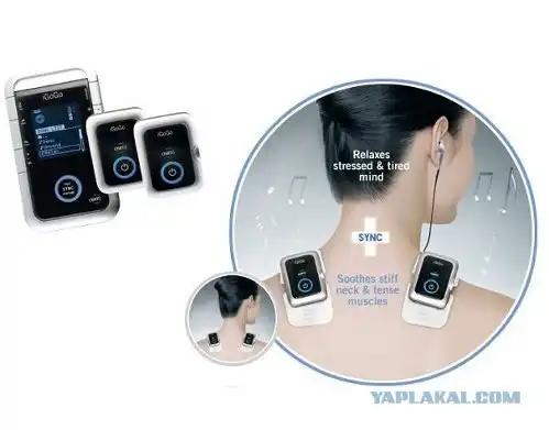 7) iGoGo от Osim предназначен для массажа шеи и плеч. Утверждается, что синхронные ритмические пульсации музыки способствуют расслаблению и возвращению бодрости. Действовать подобным образом должны 3 специальные композиции, но пользователь при желании может загрузить свои файлы - iGoGo оснащается 128 Мб памяти и разъёмом для карт MMC до 512 Мб. В комплект входит гель, который нужно нанести на тело перед креплением двух беспроводных массажеров, работающих в унисон. Оценивается продукт в $495.
