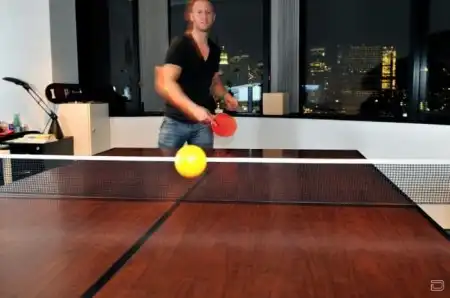Офисный стол быстро и просто становится столиком для тенниса.