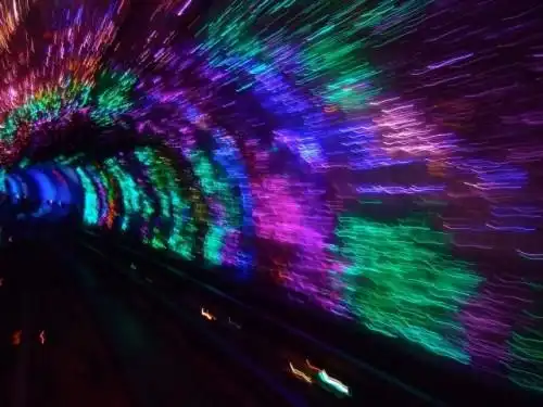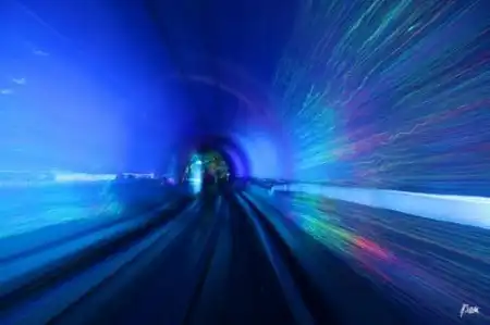 Для того, чтобы скрасить время пассажиров в темных тунелях метро города Шанхая, было придумано интересное световое шоу. Все путешествие по тунелю длиной 646,7 метра занимает около 5 минут.
