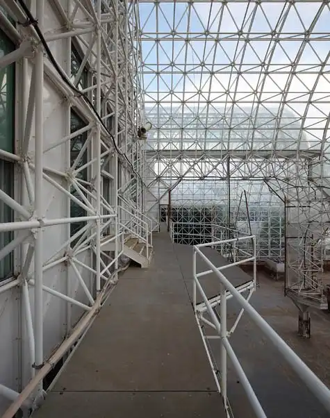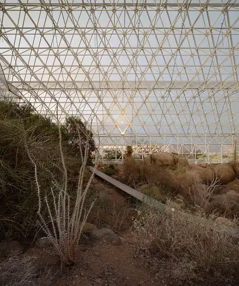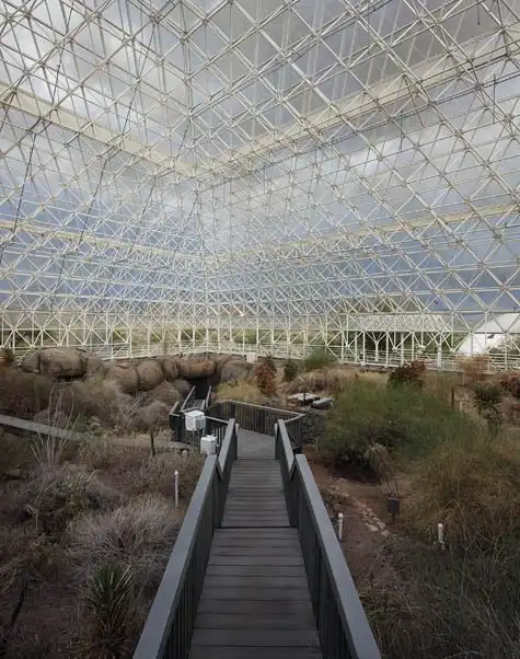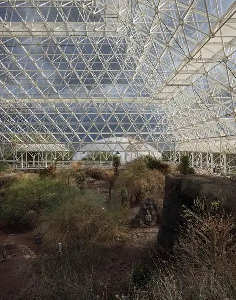 Лаборатория представляет собой сеть герметичных зданий общей площадью 1,5 га из лёгких материалов, разделённых на несколько независимых экосистем и покрытых стеклянным колпаком, пропускающим около 50% солнечного света. Внутреннее пространство разделено на 7 блоков, среди которых — тропический лес, миниатюрный океан с необычным химическим составом, пустыня, саванна и мангровый эстуарий. Гигантские «легкие» регулируют внутреннее давление таким образом, чтобы оно соответствовало наружному — это сводит к минимуму утечки воздуха.