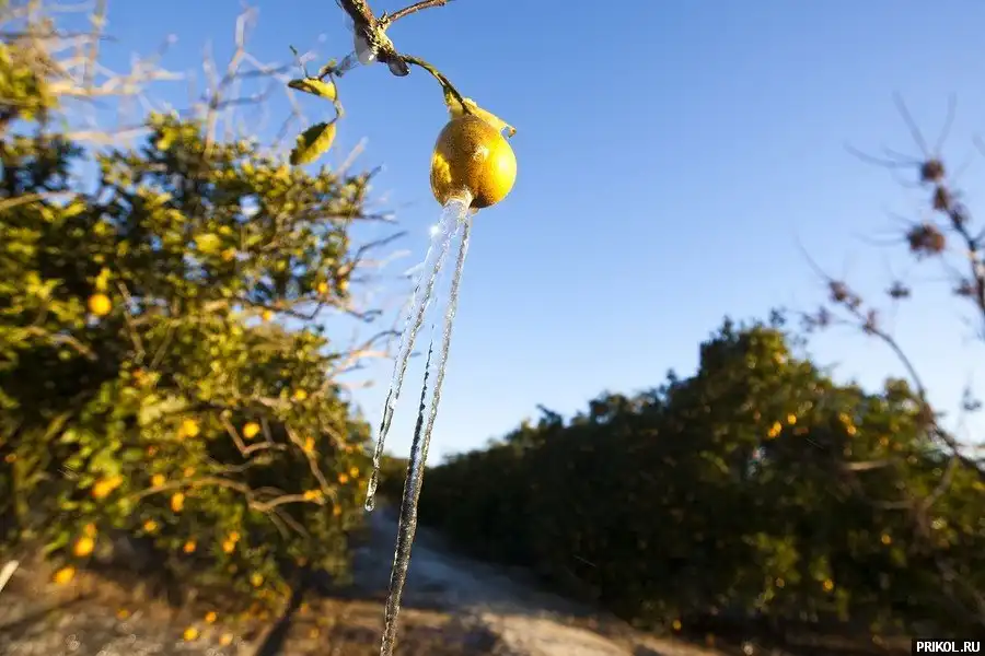 В результате внезапных морозов урожай цитрусовых культур в солнечной Флориде оказался под угрозой.---
