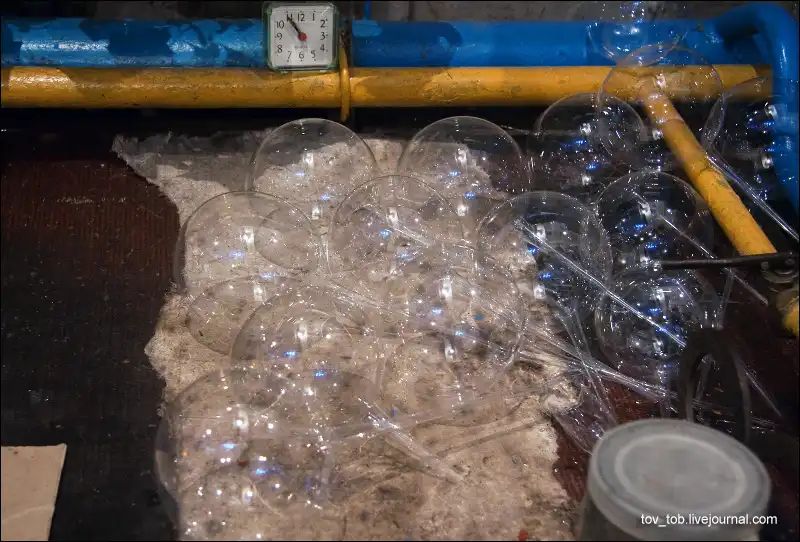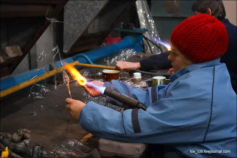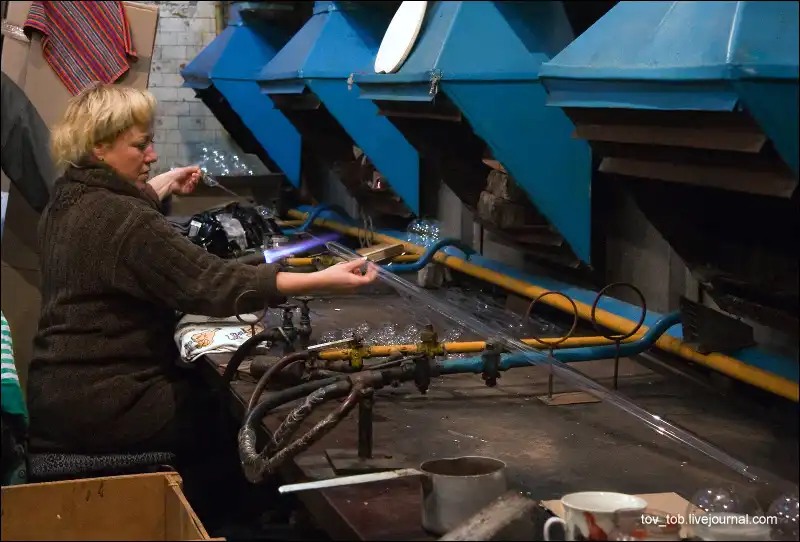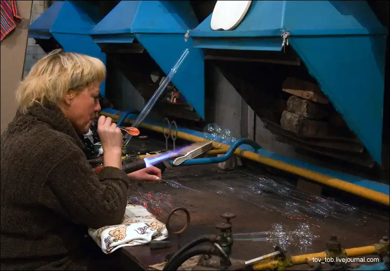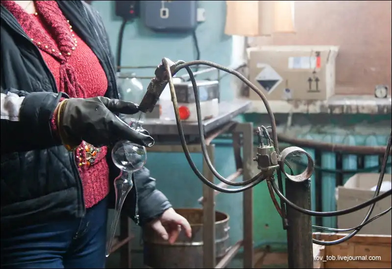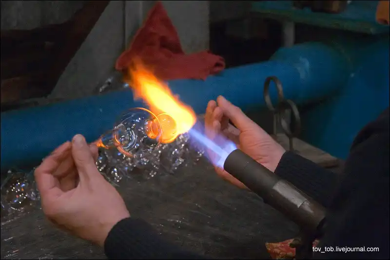 Механизированная выдувка у заказчиков не в почете: при отливе шарика остается шов от формы, поэтому весь процесс производства ручной.