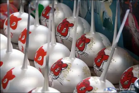 В большинстве своём - это ёлочные шары, однако ими фабрика не ограничивается и может производить стеклянные украшения достаточно большой сложности.