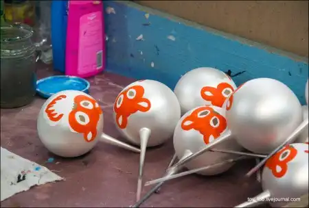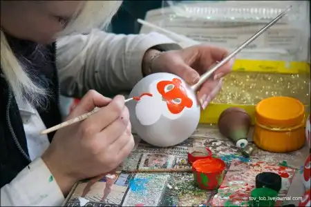 Каждая художница может разрисовать от 50 до 100 шаров в день.