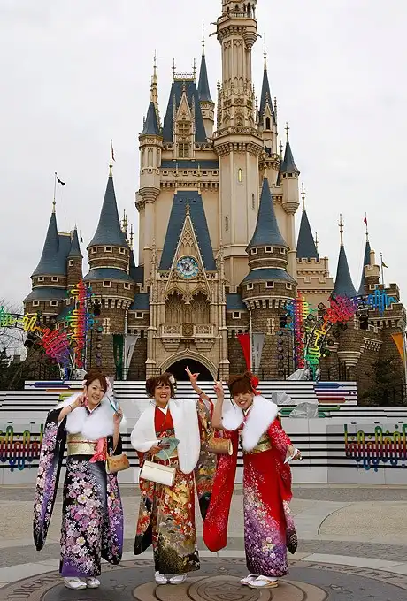 Национальный праздник Японии день совершеннолетия отметили в Токио. По традиции он отмечается во второй понедельник января. В этот день их приглашают в районные и муниципальные управления, где главы администраций дают им наставления в том, “как вести себя во взрослой жизни”. Молодые девушки, одетые в кимоно, в этот день прогулялись по Диснейленду, сделали памятные фото с героями мультфильмов, покатались на аттракционах.