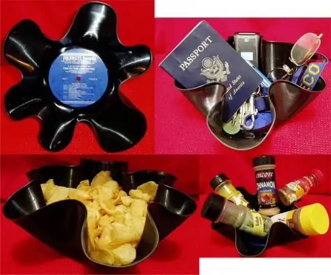 в детстве из пластинок такие штуки делали.кто горшок под цветок кто пепельницу.