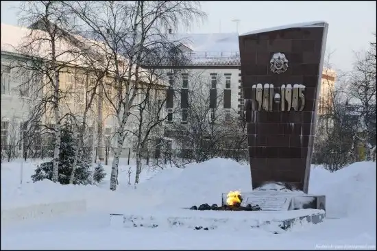 Нарьян-Мар (ненец. — Красный город), административный центр Ненецкого автономного округа. Расположен за Полярным кругом, в устье р. Печоры, в 110 км Печорского моря. Живёт там двадцать пять тысяч человек.