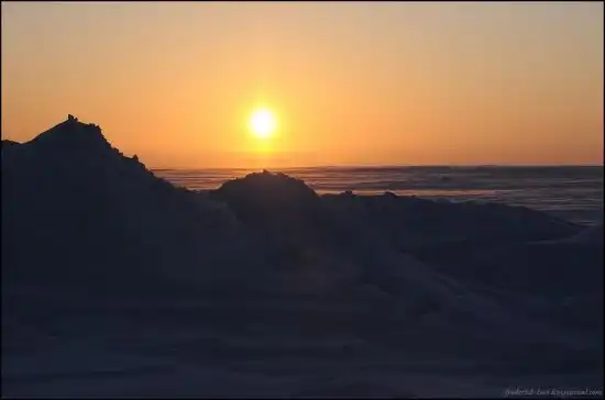19) Снег топчут тракторами, поливают кипятком и потом ровняют такими чугунными чушками и ставят вешки. Получается настоящая широченная ледяная дорога, хотя и волнистая местами. С каждым снегопадом она становится всё лучше, и отдельные психи прорываются по ней аж до мая (на 6х6 КАМАЗах, конечно).