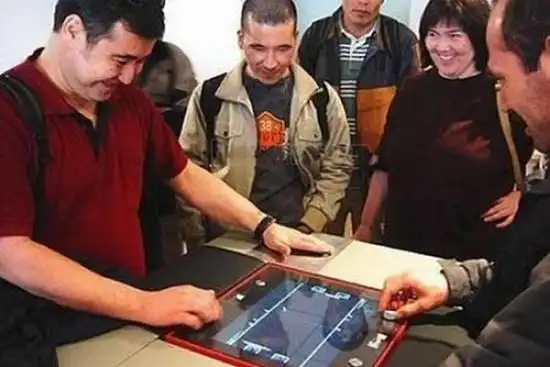 В этой игре соперники становятся друг напротив друга, располагая левую руку под специальным индикатором.