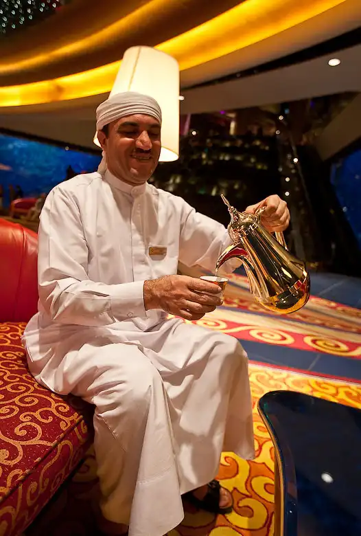 Еще когда мы жили в предыдущей гостинице и заказывали экскурсию по городу, то у нас было 2 опции: просто экскурсия по городу - 55 долларов с человека или экскурсия с чаепитием в Бурдж Аль Араб - 175 долларов. Мы тогда отказались от чая с печеньем за 120 долларов.