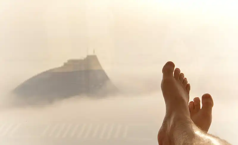 Когда я проснулся следующим утром, то не узнал пейзаж. Мы были над облаками, а флаги соседней гостиницы еле проглядывали сквозь облака: