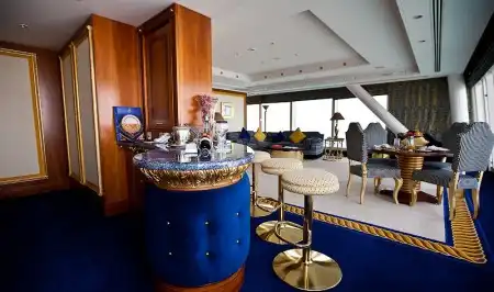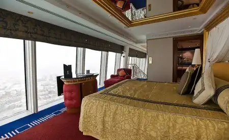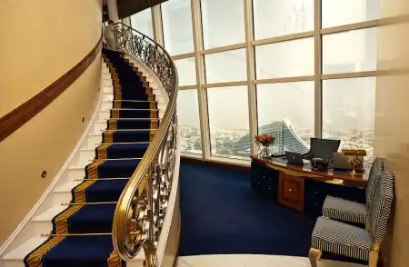 Все номера двухэтажные, и площадь самого маленького - 170 кв. м., а самого большого - 780 кв. м. Ночь в самом дешевом номере обойдется Вам в 1 500 долларов. Это первый семизвездочный отель в мире, и по совместительству он является символом Дубая. Я жил во многих дорогих отелях, но этот поразил меня. Он реально отличается от всех остальных ...