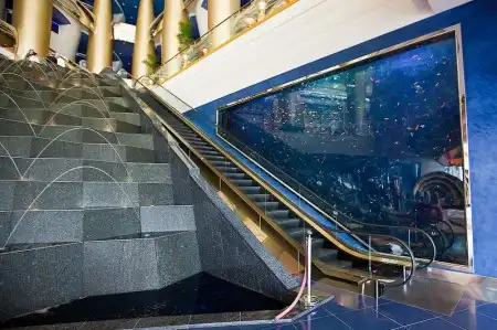 В Парусе много ресторанов. Если Вы закажите в них столик, то охрана сверится со списком, и Вас пропустят в лобби гостиницы. К слову говоря, там постоянно ходят группы туристов с фотоаппаратами и раскрытыми ртами.