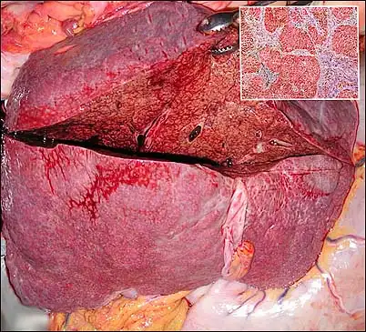 Цирроз — это процесс замещения нормальной структуры печени рубцовой тканью, приобретающей форму узлов. Эти узлы не только не выполняют каких-либо полезных функций, но мешают нормальной работе печени, сдавливая кровеносные сосуды, желчные протоки и нормальную печеночную ткань. При этом происходит нарушение выработки и накопления печенью жизненно важных веществ (белков, жиров, углеводов, гормонов), ухудшается обезвреживание отравляющих и инфекционных агентов.