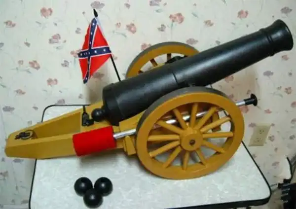 Игрушечная копия пушки армии конфедератов времен Гражданской войны в США заняла в рейтинге восьмое место. При длине около 75 сантиметров она способна стрелять пластиковыми ядрами на расстояние до десяти метров. Для этого достаточно потянуть за спусковой шнур пружинного механизма. При попадании пластмассового ядра в область лица неприятные последствия фактически неизбежны.