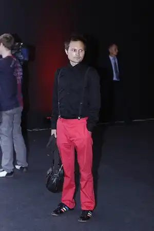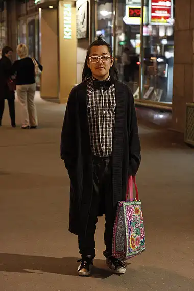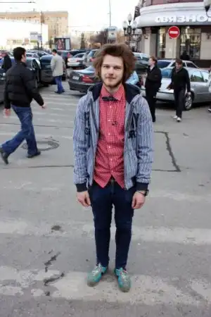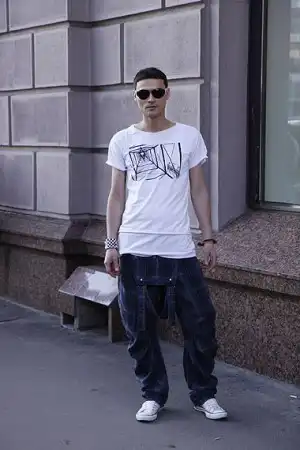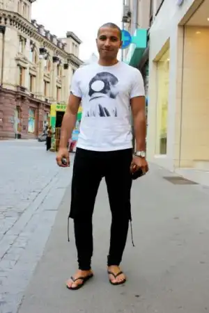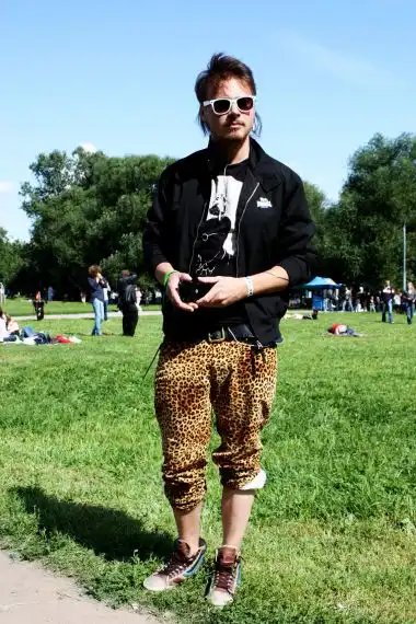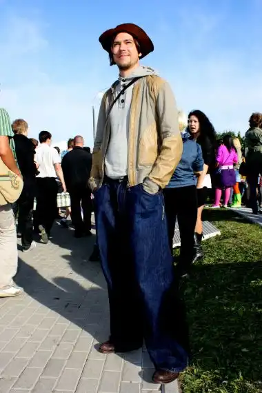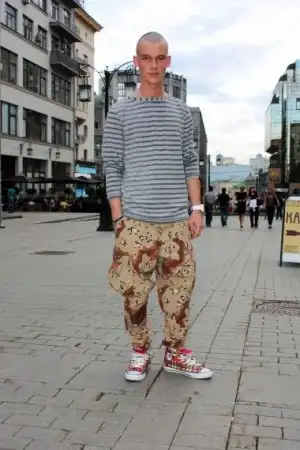 (Спортивные штаны с кожаными туфлями - блевотная классика. И еще шапка, поднятая и заправленная за уши - вообще жесть. )
