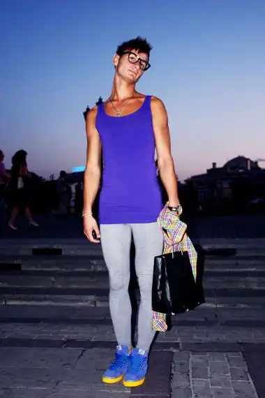 Для пе*иков можно отдельный пост сделать (а их здесь мнооого, порадовал чувак в фиолетовой майке, большой дядя в коротеньких джинсовых шортиках и модный пижон с загорелыми бритыми ногами)))), а так очень даже ничего. Радует, что мужчины наконец-то стали носить шорты, не привычно, но в жару смотрится вполне адекватно. И разноцветную одежду. А колготки, шароваты и резинки срочно сжечь!