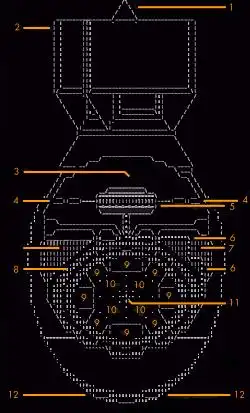 11 - резервуар для бериллиумной/полониевой смеси для инициации цепной реакции