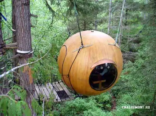 (Британская Колумбия, Канада). Эти деревянные сферы 3200 мм в диаметре по технологии изготовления очень похожи на каюты яхт. Подвешиваются к дереву, скале или мосту. Имеют якорь для удержания постоянного положения.