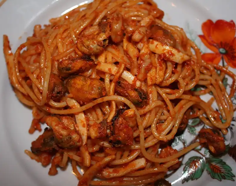 Что же касается спагетти с ракушками, то нужно помнить, что после того, как Вы при помощи вилки и ножа (иногда к столу подается специальный инструмент для разделки мягкотелого деликатеса, внешним видом напоминающий самую обыкновенную отвертку) предварительно извлечете моллюсков, раковины следует сложить на специальную тарелочку.