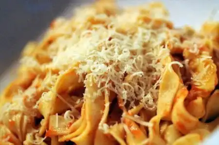 Pappardelle- плоские, широкие (около 1,5 см) и длинные полоски лапши со слегка зазубренными краями. В Италии эта лапша часто подается к блюдам из кролика.