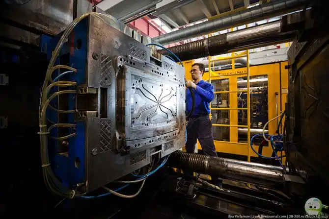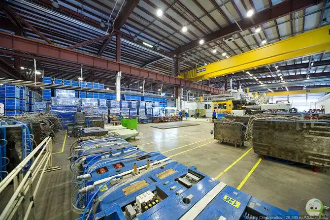 8. На производство одной детали уходит около 2-х минут, всего на заводе я насчитал 15 станков для литья деталей. Все они однотипны и работают со сменными пресс-формами.