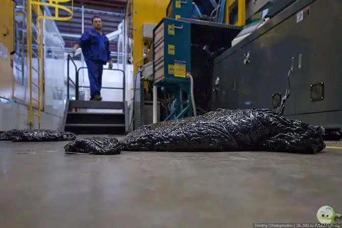 19. Неожиданно рабочий открыл какую-то дверцу и извлек большой, горячий кусок пластмассы.