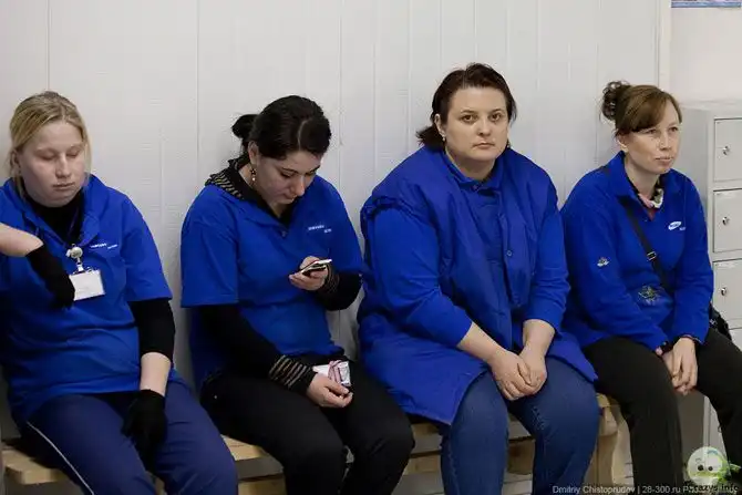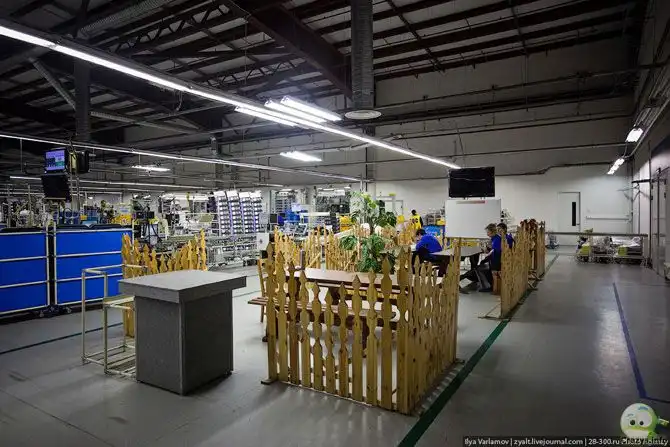Как вы видите, все сделано для того, чтобы рабочие не скучали. Кстати, почти все работники завода молодые люди. Зарплата на конвейере 25 000, плюс соцпакет, перспективы карьерного роста.