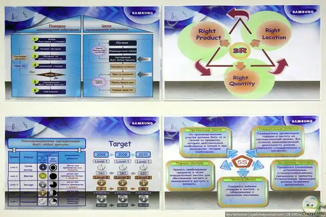 35. Теперь немного про традиции на заводе. Больше всего меня удивили лозунги в цехах, написанные в лучших традициях советского времени. Ничего кроме смеха у рабочих они не вызывают, но корейцам, наверное, кажется, что русским туземцам они помогут работать. Я процитирую некоторые из них: