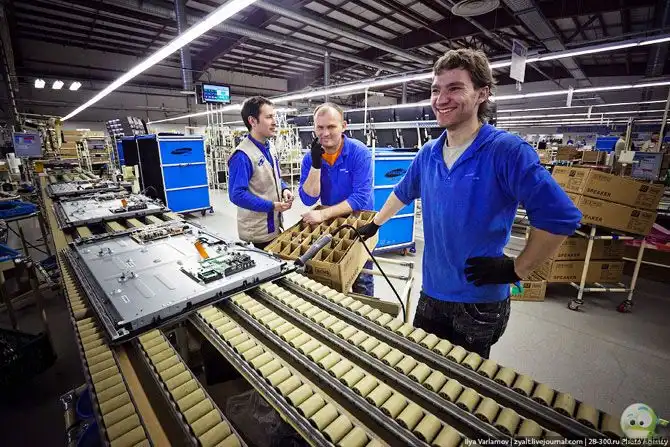 А теперь пойдет речь о конвейерах с ручной сборкой всех комплектующих в единое целое. Также в конце я покажу, в чем разница между телевизорами LCD и LED.