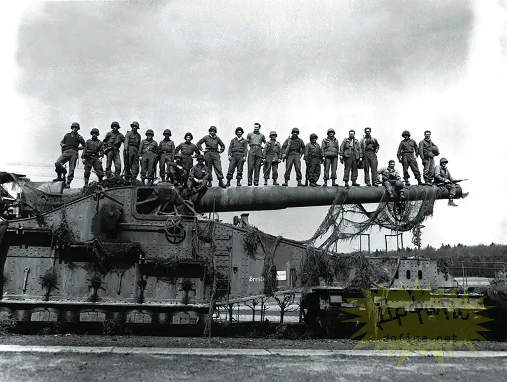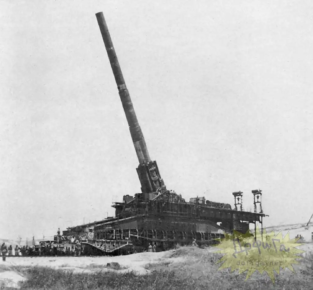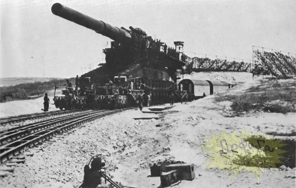 … И знаменитая пушка «Дора» калибра 800 мм. Она была спроектирована для разрушения наиболее мощных сооружений линии Мажино, однако использовать её там для этого не пришлось. Это было чудо артиллерийской техники. Ствол имел длину порядка 30 м, а лафет достигал высоты трёхэтажного дома. Потребовалось около 60 железнодорожных составов, чтобы по специально проложенным путям доставить это чудовище на огневую позицию. Для его прикрытия постоянно стояло наготове два дивизиона зенитной артиллерии. В целом эти расходы, несомненно не соответствовали достигаемому эффекту. Тем не менее это орудие одним выстрелом уничтожило большой склад боеприпасов на северном берегу бухты Северной, укрытый в скалах на глубине 30 м.