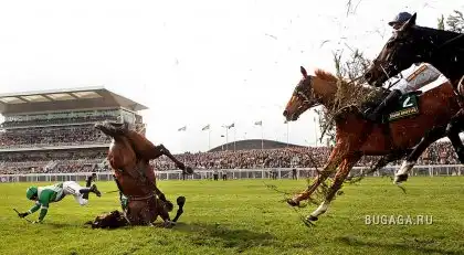 Падение лошади на скачках Grand National в Ливерпуле, четверг. (Action Images/ZUMApress.com)