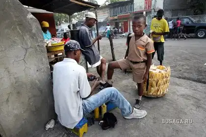 Мальчик остановился, чтобы почистить обувь по дороге в школу в Порт-о-Пренс. Несколько сотен школ должны открыться на этой неделе впервые после землетрясения 12 января. (Sophia Paris/MINUSTAH via Getty Images)
