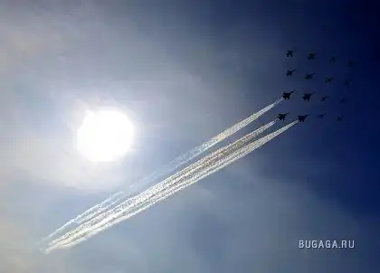Истребители Сухого и индонезийские F16 демонстрируют фигуры высшего пилотажа в Джакарте на день ВВС. (AFP)