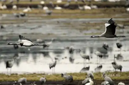 Более 15 тыс. журавлей фланируют над озером в местечке Скёвде в Швеции, которое является их перевалочным пунктом на весеннем миграционном маршруте. (AFP)