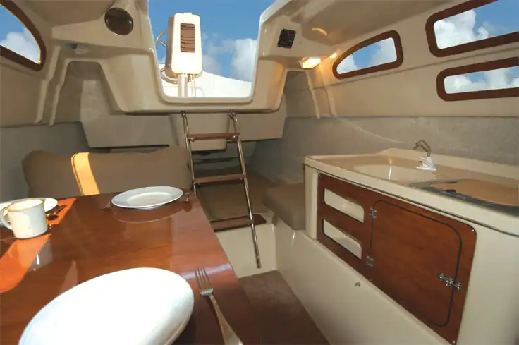 Она наиболее удобна для коротких морских путешествий и плаваний выходного дня, но из-за ограниченной площади жилых помещений и оборудования длительные переходы на ней некомфортабельны.
