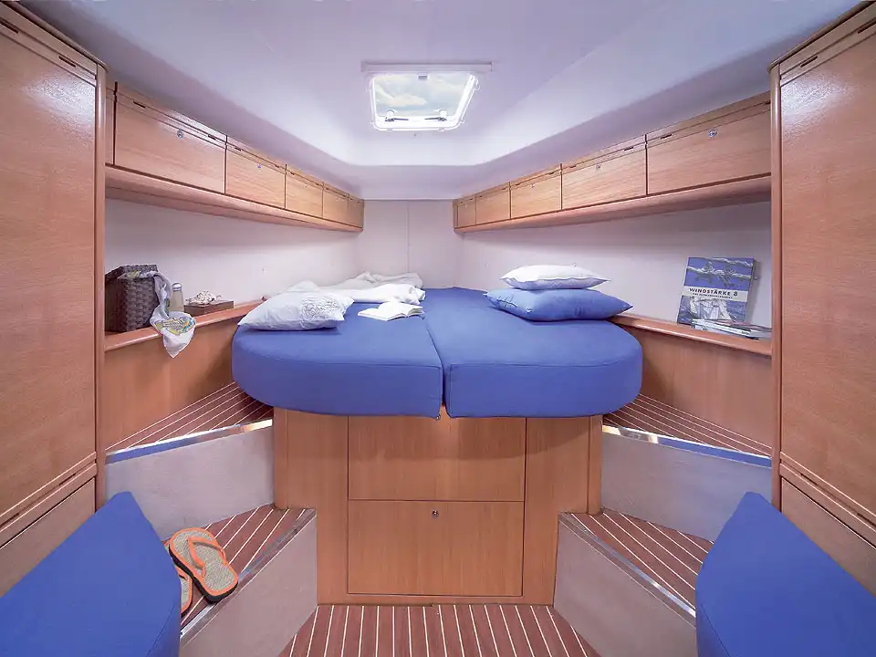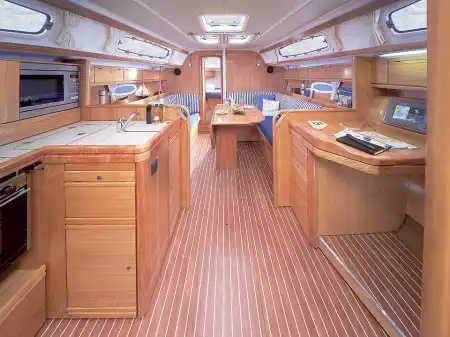 Планировка палубы крейсерской яхты позволяет работать с парусами, не выходя из кокпита. Палуба изготовлена из стеклопластика с нескользящей поверхностью и имеет леерное ограждение.