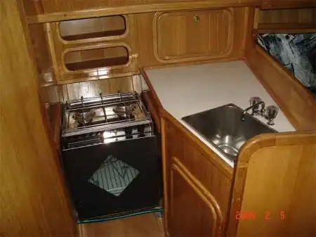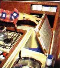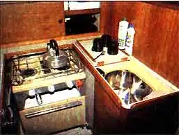 Камбуз должен быть оснащен небольшой плитой, установленной на кардановом подвесе и работающей на сжиженном газе, керосине или спирте, раковиной из нержавеющей стали с подачей воды при помощи насоса, холодильником, разделочным столом, шкафчиками для посуды, специальное оборудование которых не позволяет их содержимому перемещаться. Поперек камбуза рекомендуется протянуть строп, чтобы помочь коку при крене яхты сохранять равновесие. В камбузном уголке необходимо всегда держать огнетушитель и кошму (покрывало) для тушения огня. Так как пространство камбуза ограничено, то для обеспечения доступа ко всему оборудованию он должен быть тщательно скомпонован.