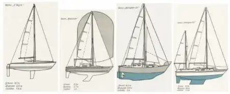 Ниже показаны четыре типа крейсерских яхт - трейлерная, малая крейсерско-гоночная, большая семейная и специальная для больших крейсерских гонок. В прессе большинства стран регулярно дается реклама продающихся новых и подержанных яхт, яхтенные брокеры также дадут информацию и совет будущему покупателю яхты.