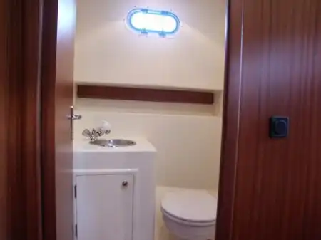 Гальюн расположен в небольшом отделении между каютой и форпиком и оборудован дверями. Существуют морские туалеты различных типов, но все они работают, как правило, от специального насоса. Прежде чем воспользоваться гальюном, лишний раз повторите инструкцию. В этом отделении обычно есть возможность оборудовать умывальник (раковину), а на больших крейсерских яхтах установить душ с горячей и холодной водой. Однако это слишком большая роскошь на борту, и большинство крейсерских яхт оборудовано только умывальниками с холодной водой. Пол в гальюне устроен таким образом, чтобы вода стекала в трюм или в сточную цистерну.