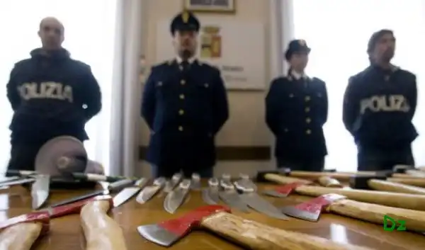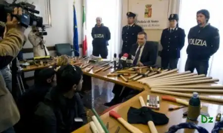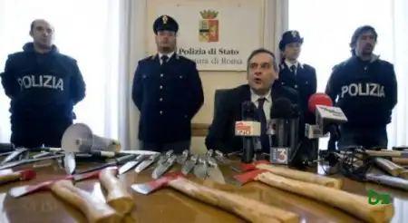 Этот арсенал был изъят у итальянских футбольных болельщиков, присутствовавших на римском дерби.