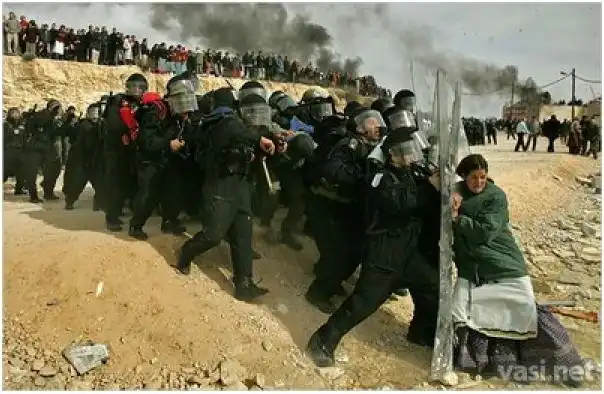 7.Поселенка сопротивляется офицеру израильской армии, аванпост Амона, Западный Берег реки Иордан, 1 Февраля 2006.