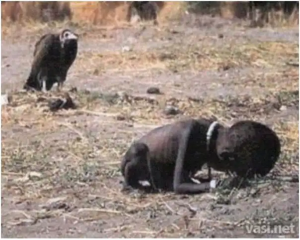 6. Фотография «Голод в Судане», снятая в начале весны 1993 года. Маленькая девочка, умирающая от голода.