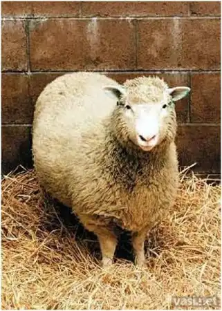 24. Долли (англ. Dolly) — самка овцы, первое млекопитающее, успешно клонированное из клетки другого взрослого существа.