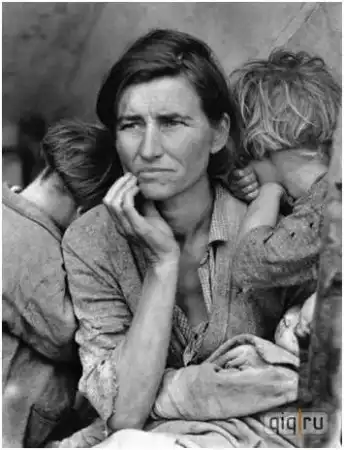 37. Портрет Флоренс Томпсон (1936) стал символом Великой Депрессии в США. На фото ей 32 года. Ни одна другая фотография того времени не произвела такого эффекта как «Мать-мигрантка». Ее перепечатывали все периодические издания в США и других странах, с нее печатались огромные плакаты.