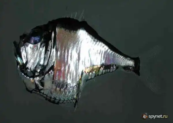 Есть еще одна рыба из семейства топориковых. Ее так и называют, рыба-топорик, она живет в мире больших глубин, отличном от нашего. Эта глубоководная рыба была обнаружена во всех океанах за исключением самых холодных областей. Как Протей и рыба-капля, топорик проводит всю жизнь практически в полной темноте. На ее коже расположены особые органы – фотофоры, выделяющие свет и позволяющие хоть немного видеть добычу и избегать хищников. Выглядит рыба-топорик очень необычно и страшно, но не представляет никакой опасности – ее длина всего несколько сантиметров