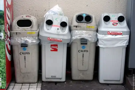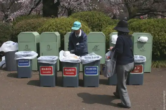 Уборщик помогает сортировать мусор неграмотным и слепым.
