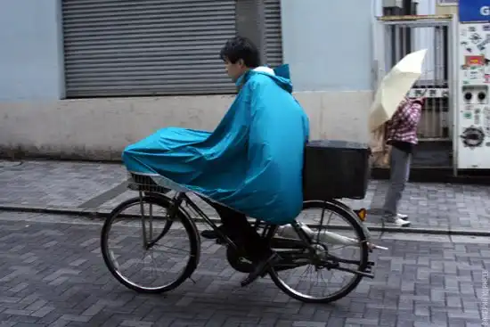 Плащ-попона предохраняет от дождя и курьера, и его груз.