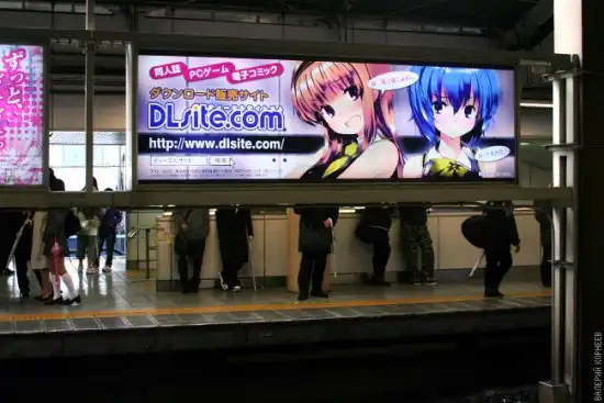 Аниме-персонажи в наружной рекламе попадаются только в районе Акихабара, где больше всего магазинов для отаку.
